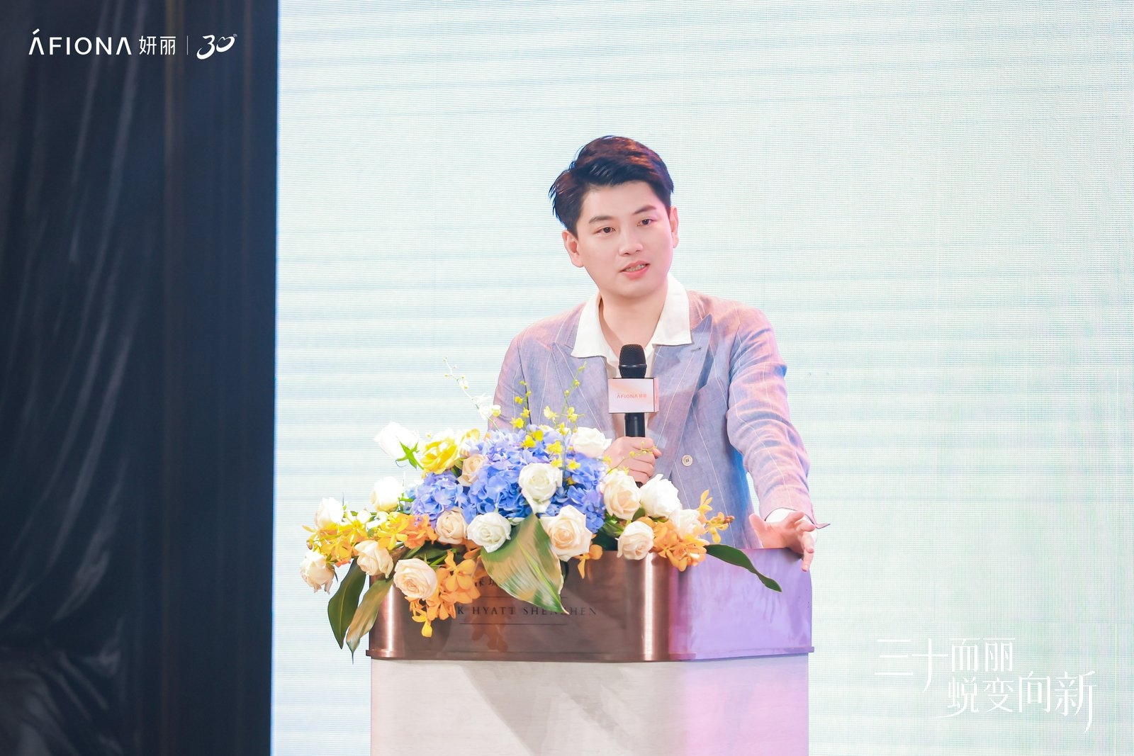 徐君在致辞中衷心感谢各方伙伴三十年来的支持,使妍丽从广州一家小型集合店发展成为全国领先的中高端美妆零售品牌。她坦言过去的一年,中国美妆行业经历了低谷,但是我们勇于改革创新,探索新的运营模式。从只有线下到全渠道扩展,从传统运营到数字化转型,我们都取得了很好的突破,尤其是通过开设新的品牌店中店和专门的服务SPA区,让顾客不仅能买到心仪的产品,更能享受专业的服务和沉浸式的购物体验。